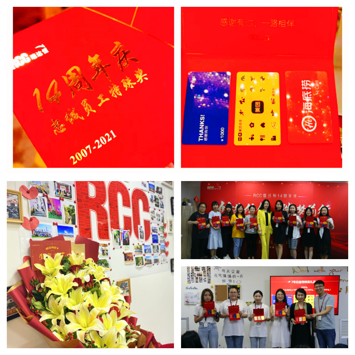 ? ? ? ? ? 只要是3年及以上的RCC老員工,每年公司周年慶都有一份特殊獎。今年的特殊獎依舊裝載了公司滿滿的心意,美團(tuán)卡、京東卡、海底撈卡從衣、食、住、行都照顧到了!